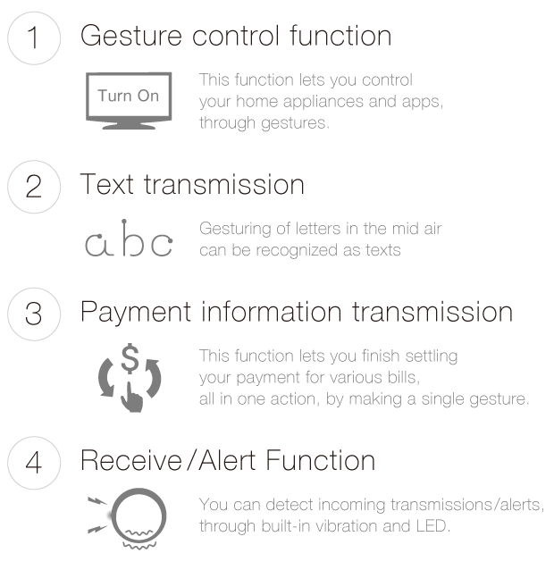 The Ring is a hardware device that resembles an ordinary (if slightly chunky) ring, filled with sensors and electronics to give it the ability to control devices and render input. It can enable gesture controls, of the kind you’d get with a Wii remote, for instance, as well as text input by drawing letters in the air, gesture-based authorization for finalizing payments, and transmit alerts from connected devices via a built-in vibration motor and onboard LED.