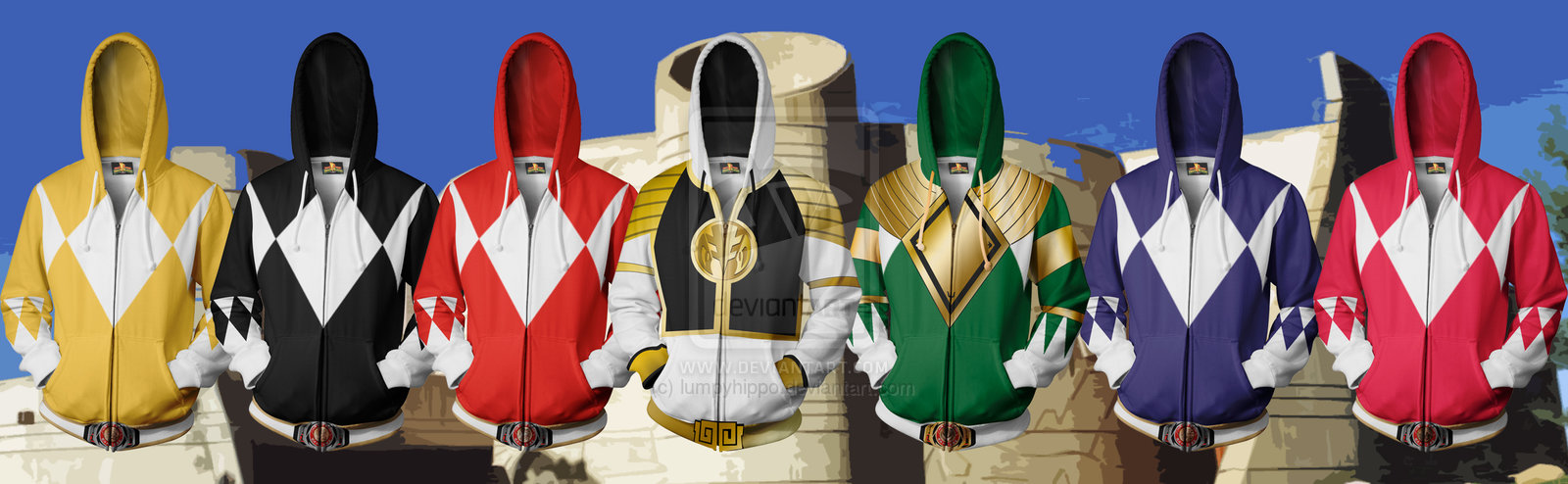 Dont lie to me Or yourself and say you dont want these. I’ll admit, I can’t think of anytime other than halloween where you wouldn’t get those awkward stares, but we all have “fuck it, I’ma wear my power ranger hoodie” day. Theres also two sets of TMNT hoodies: good guys and baddies, and you cant get em over at lumpyhippo.deviantart.commighty_morphin__power_ranger_hoodies_by_lumpyhippo-d742c30